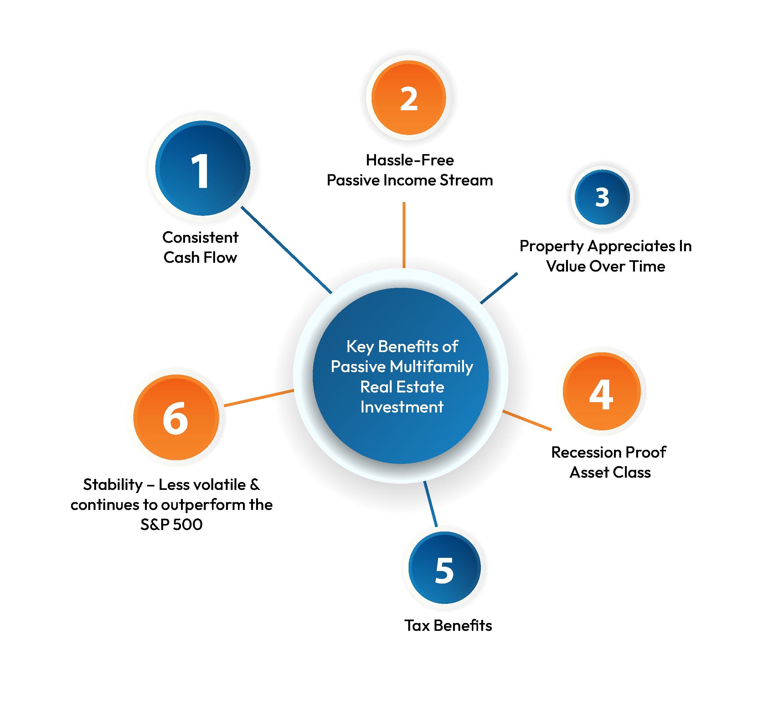 Passive investment through multifamily real estate is the best investment for busy professionals and Tech executives. Itโs the only investment where your capital is protected by the underlying real estate asset and also gives you cash flow, appreciation, equity, and tax benefits, all without the hassles of being a landlord, so you can focus on what matters most to you.
